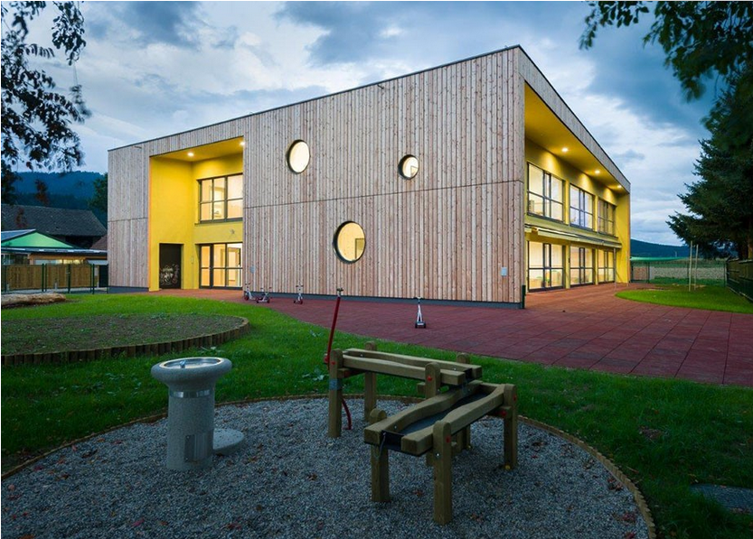 斯洛文尼亞的?martno分時(shí)幼兒園是低能耗房屋。幼兒園室內(nèi)的采用木材裝飾,所有墻面的木材都是當(dāng)?shù)厝〔模@......